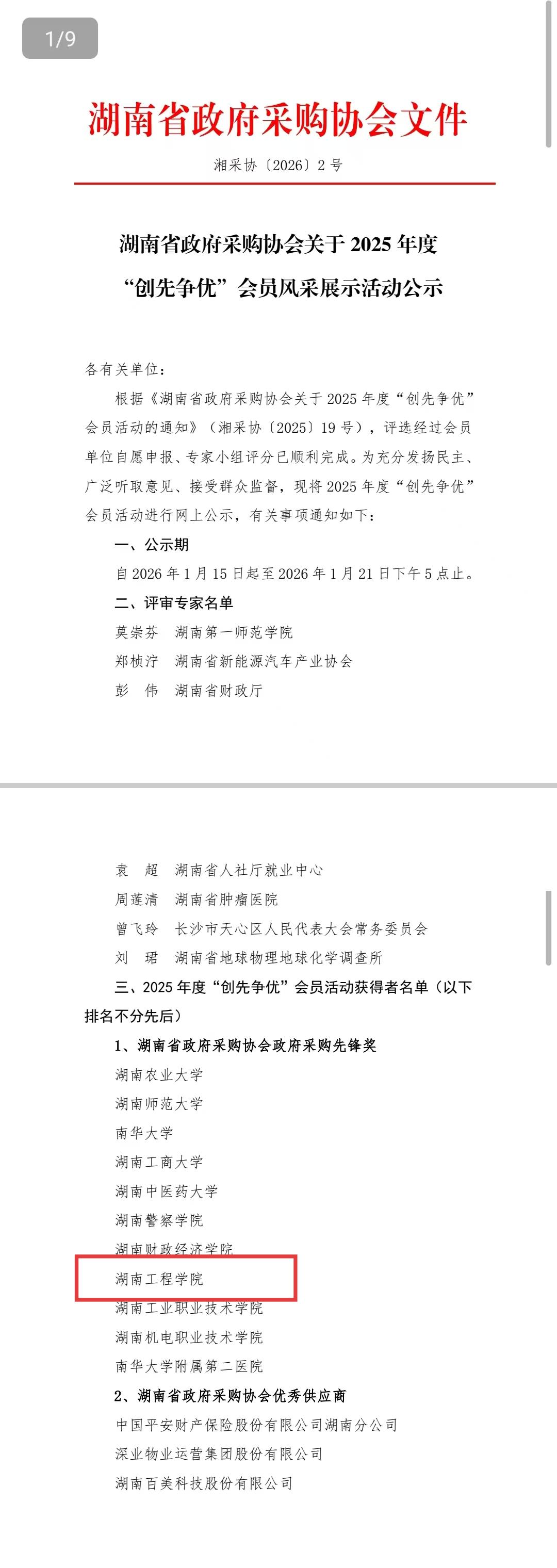 2026年1月14日,在湖南省政府采购协会2025年度表彰活动中,我校凭借在政府采购工作中的规范化实践与突出成效,成功斩获“政府采购先锋奖”,这是行业对我校践行阳光采购、落实政策要求的充分肯定。